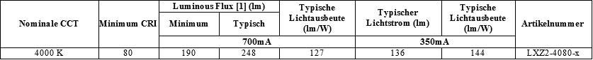 1. Lumileds hält eine Toleranz von ±6,5 % für den Lichtstrom und die radiometrische Leistung und ±2 für die CRI-Messungen ein.