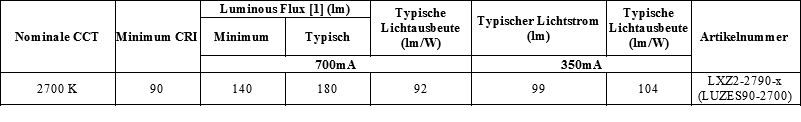 1. Lumileds hält eine Toleranz von ±6,5 % für den Lichtstrom und die radiometrische Leistung und ±2 für die CRI-Messungen ein.