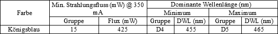 Standard-Bestellcodes und Bins (Farbe XP-E, TJ = 25 °C)
